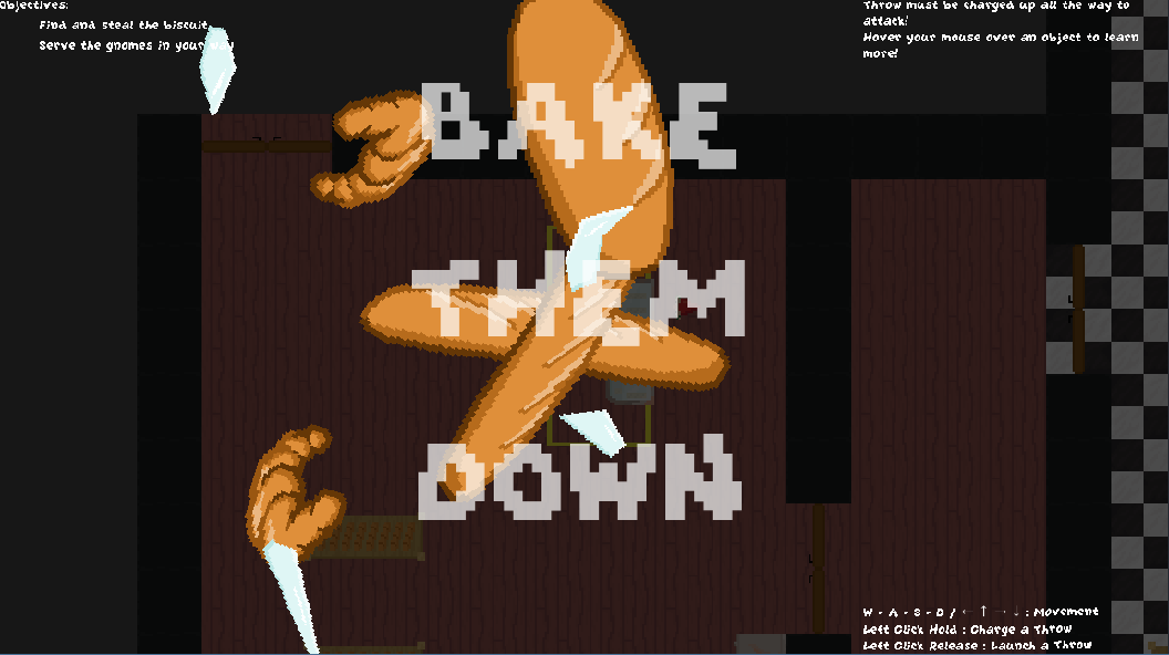 Play as Gregorio, master baker on a quest to market dominance! The gnomes cheat! They use magic to make their baked goods better! Infiltrate their bakeries and find their secrets! Be careful, they will not hesitate to STOP YOU!